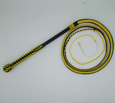 All of the Whips and What Knots whips we provide are hand braided with nylon, the handles are made with polyvinyl tubing and once finished are infused with wax. The hybrid stock whips you will get from us are versatile, long lasting and need minimal care.